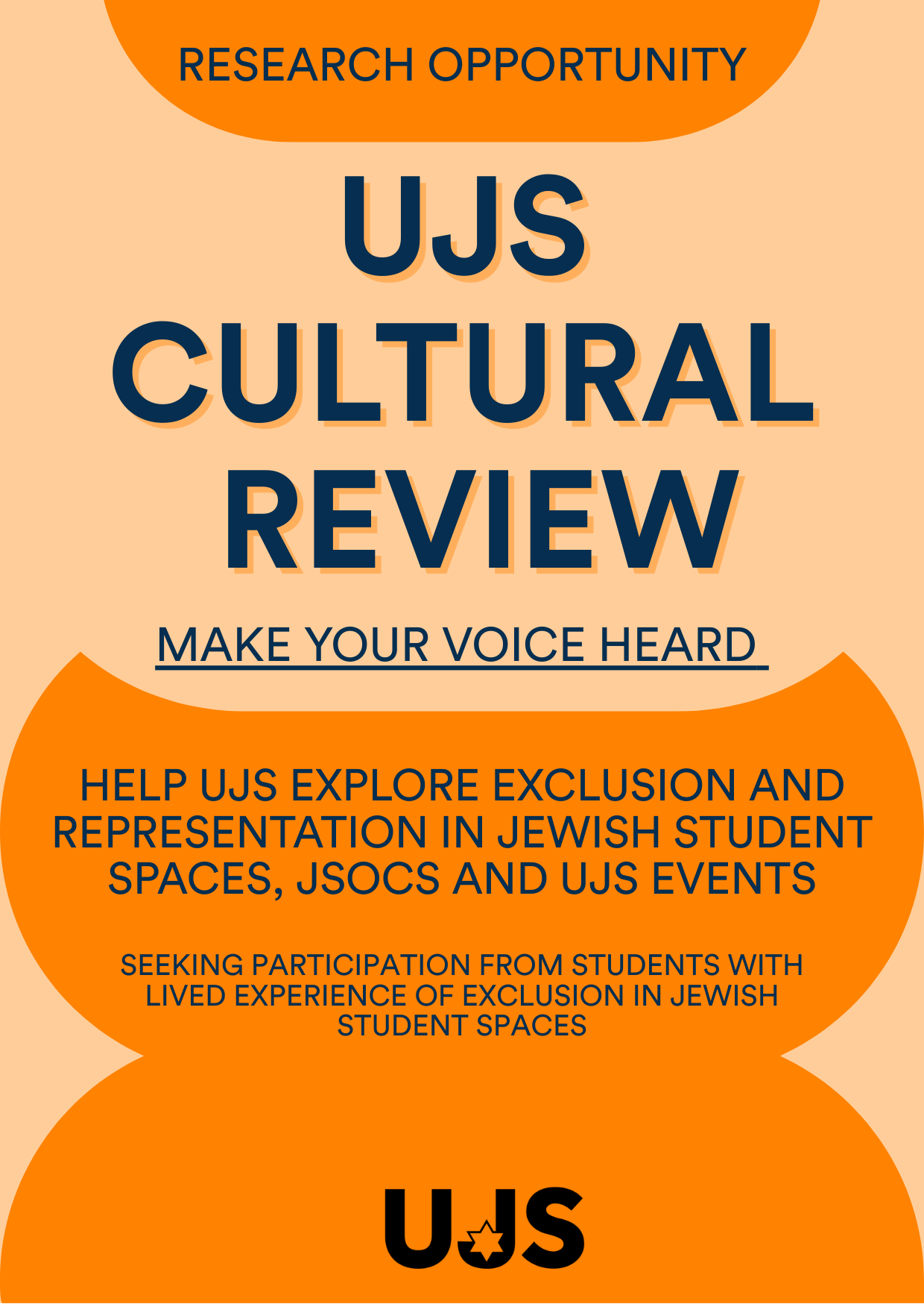 UJS is inviting Jewish students across the UK and Ireland to share their experiences of exclusion within UJS and JSoc spaces: particularly students with intersecting identities (but not exclusively): Diverse religious identities and observance (e.g Progressive, Masorti, Orthodox) students, Jewish student members of the queer/LGBTQAI+ community, gender minorities and women students, Black and Jewish students of colour, and disabled and neurodivergent students.The research involves voluntary participation in focus groups and individual interviews, in person or online. Lasting between 1-2 hours.