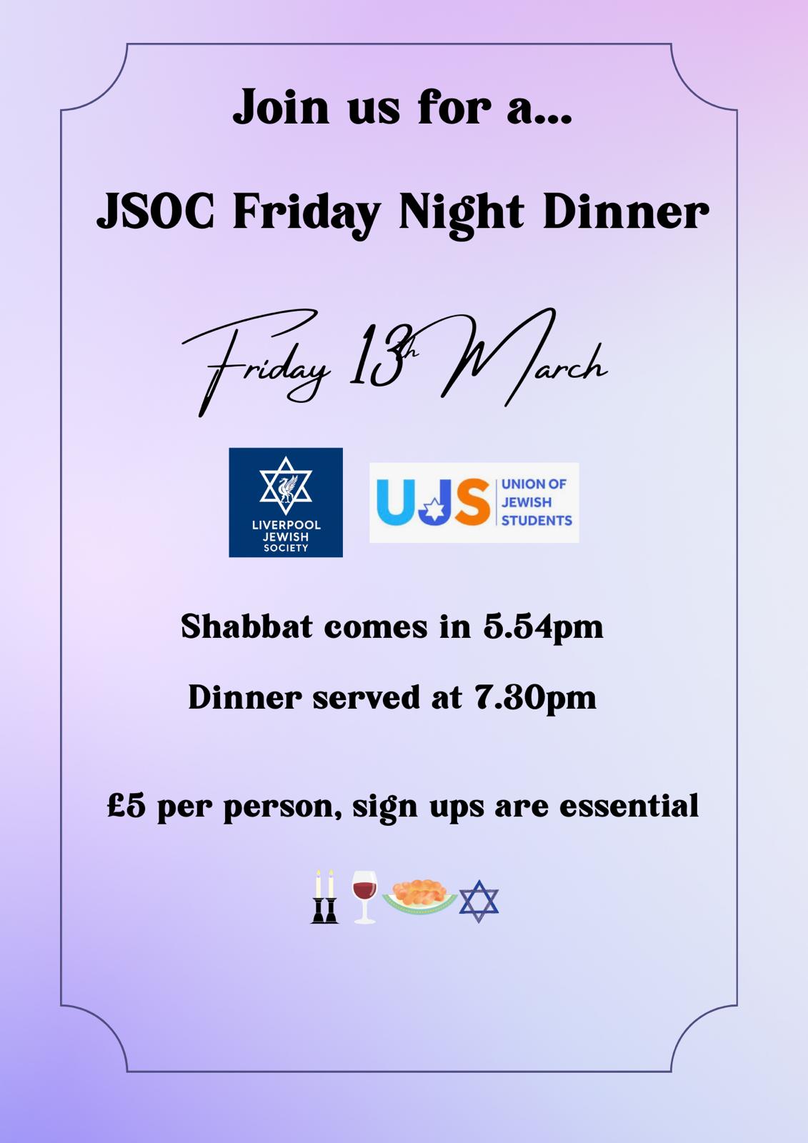 Liverpool JSOC is hosting a Friday Night Dinner